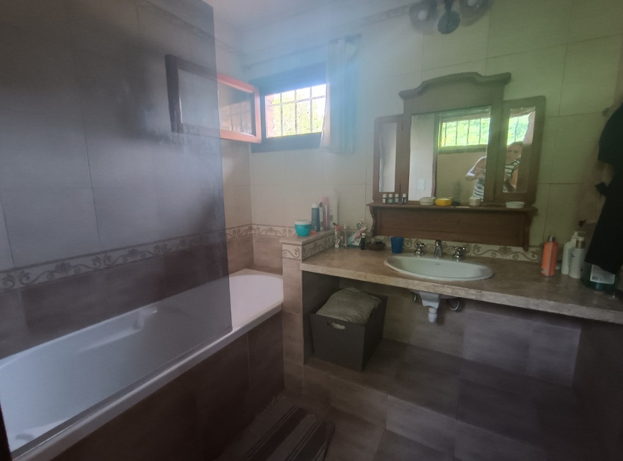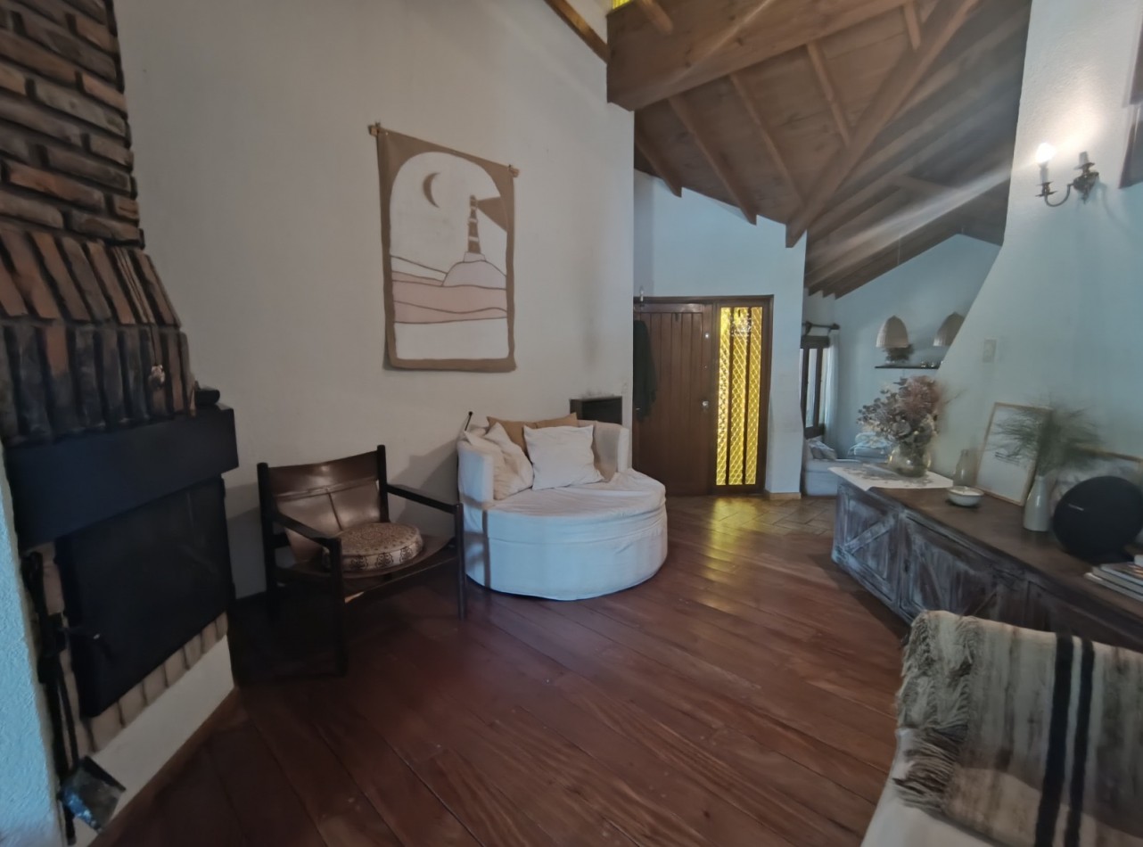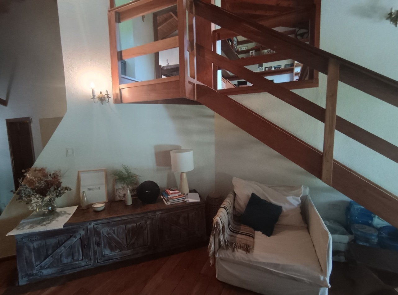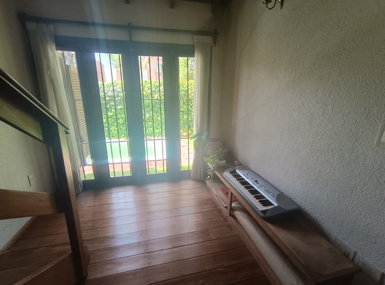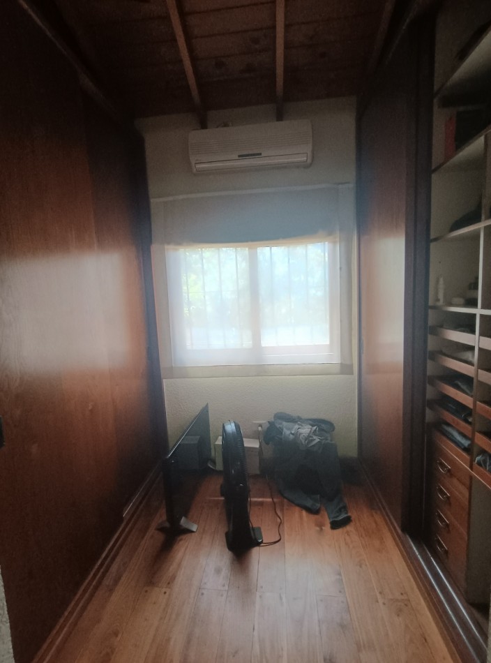 Este chalet es de 5 ambientes con garage, parque y pileta. En planta baja encontramos amplio living comedor en desnivel con salida al parque, cocina comedor muy amplia, un baño completo, dos dormitorios con placards, garage con parrilla, parque con pileta. En planta alta un playroom, dos dormitorios, el dormitorio principal en suite con vestidor y baño completo. Cabe destacar que la planta alta tiene una antigüedad de 10 años aproximadamente. Cuenta con todos los servicios. Muy buen estado de conservación.